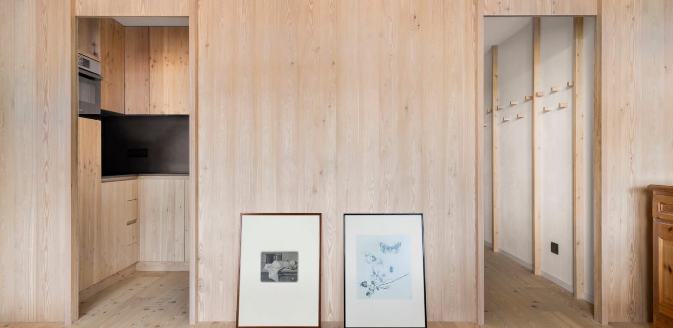 Appartamento in legno lamellare di larice con finitura naturale