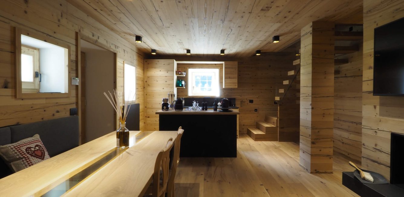 Maso ristrutturato interamente in legno vecchio abete e rovere